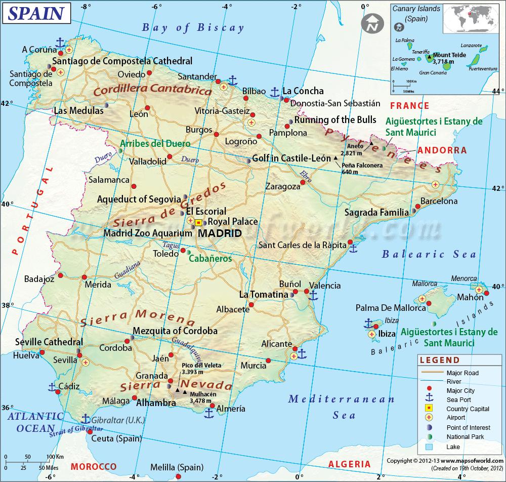 Map of Spain with major cities